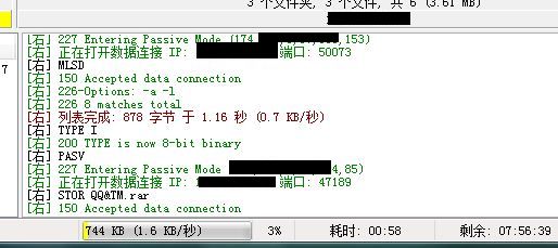 在使用中发现一个问题,就是用flashfxp上传文件,非常慢,一开始可以达到60KB,几十秒后马上由60KB下载到0,最后慢慢上传,只有几个KB,上传一个晚上才上传了几M,极为上火。