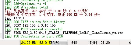 在LeapFtp中比较好调整,“Preferences–>General–>Connection–>Data Connection”,更改为PORT,也就是主动模式,上传开始,传输一个300MB左右的文档,可以保证在55~60KB/S之间,速度还是很理想的