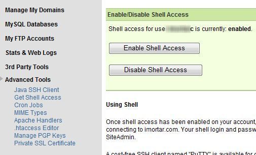 1、登录site5后台,开放您的SSH权限(SITE5的SSH权限,可以自己设置开放与关闭,非常得方便),如下图: